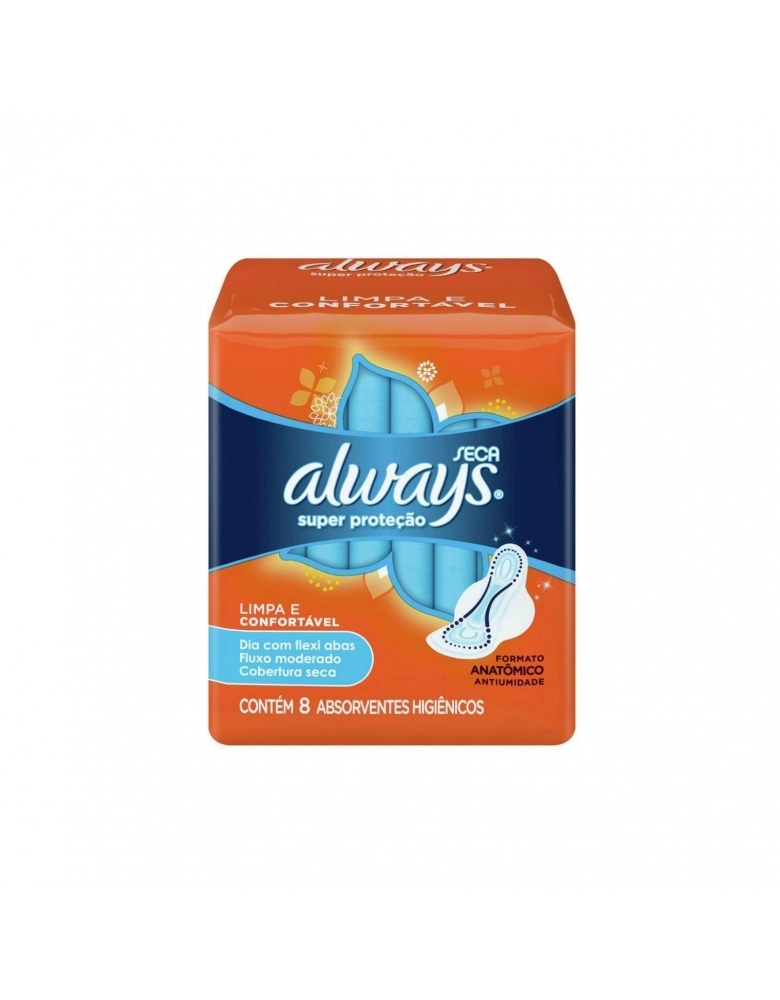 HIGIENE PESSOAL>ABSORVENTE>ABSORVENTE COM P&G ABAS SECA SUPER EXTERNO PROTEÇÃO ALWAYS PACOTE 8 UNIDADES